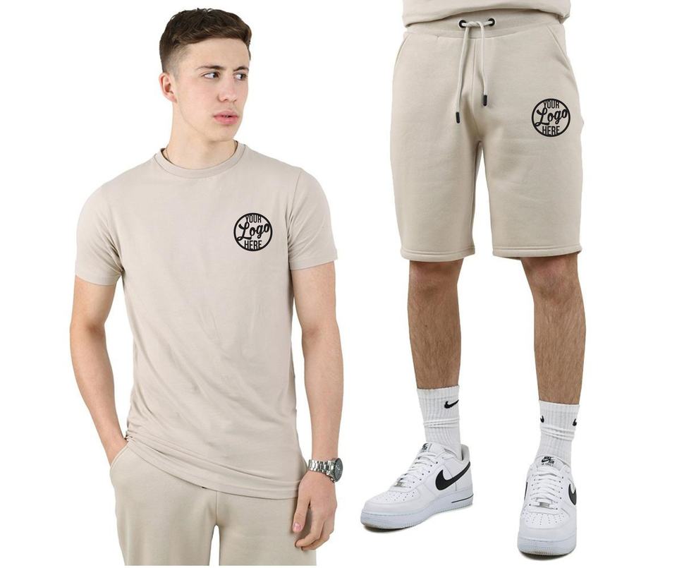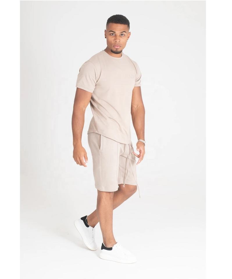 Ropa de gimnasio de alta calidad con impresión de logotipo personalizado, conjuntos gemelos lisos de gran tamaño para hombre, ropa de verano, conjuntos gemelos informales de algodón en blanco para hombre 2025