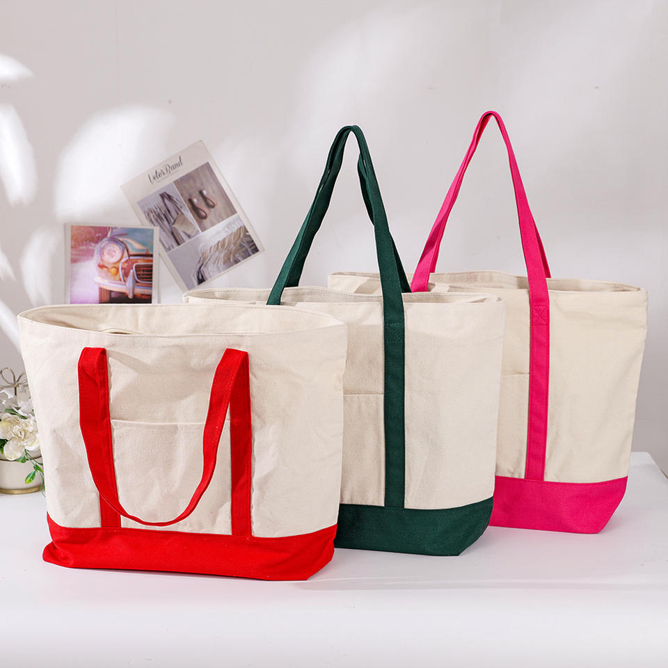 Bolsa de Compras de Lona de Algodón con Bolsillo, Personalizable con Logotipo, Gran Capacidad