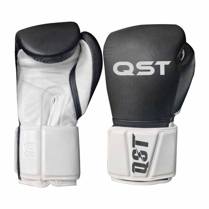 Guantes de Boxeo QST Profesionales con Logotipo Personalizado, de Cuero Genuino Resistente, Cierre de Gancho y Bucle, Transpirables, Último Modelo para Muay Thai