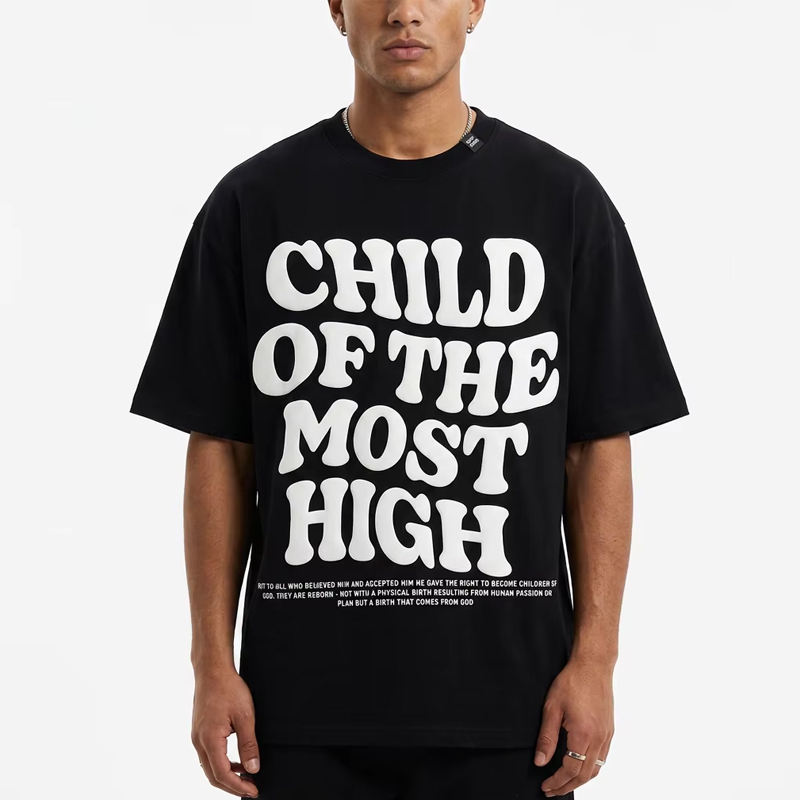 Camiseta con Logotipo Personalizado, Impresión Puff 3D, Algodón Grueso, Camiseta Gráfica Extra Grande, Estilo Urbano Vintage para Hombre y Mujer