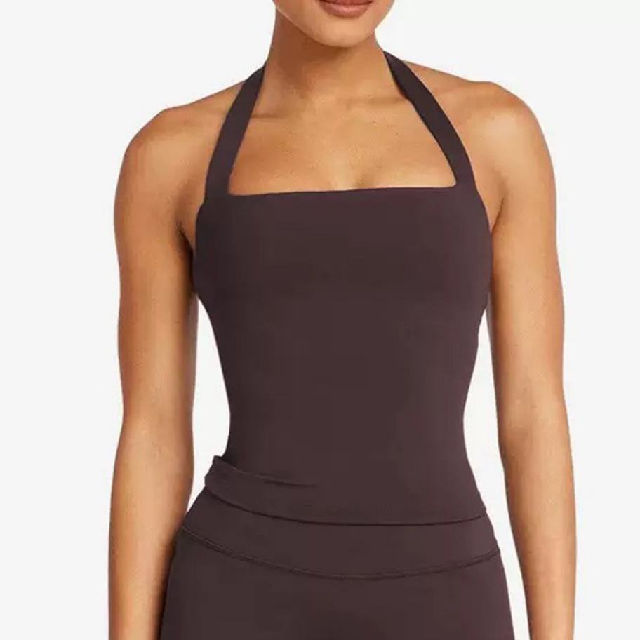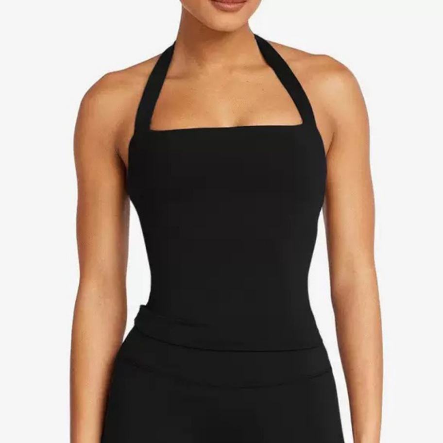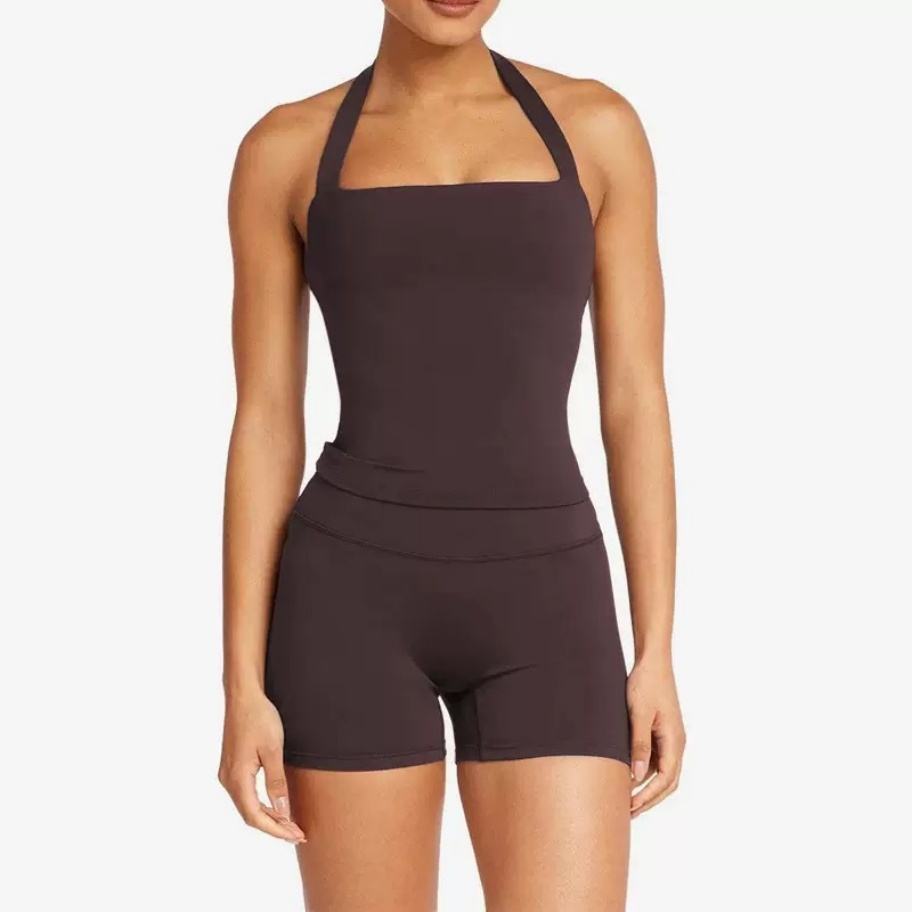 Conjunto de Yoga sin Costuras para Mujer, Top Corto Halter Sexy de Secado Rápido con Logotipo Personalizado, Pantalones Cortos XL, Ropa Deportiva para Gimnasio, Sensación de Desnudez