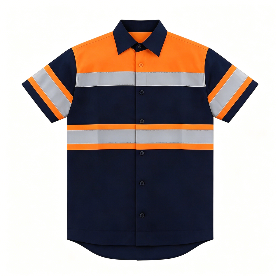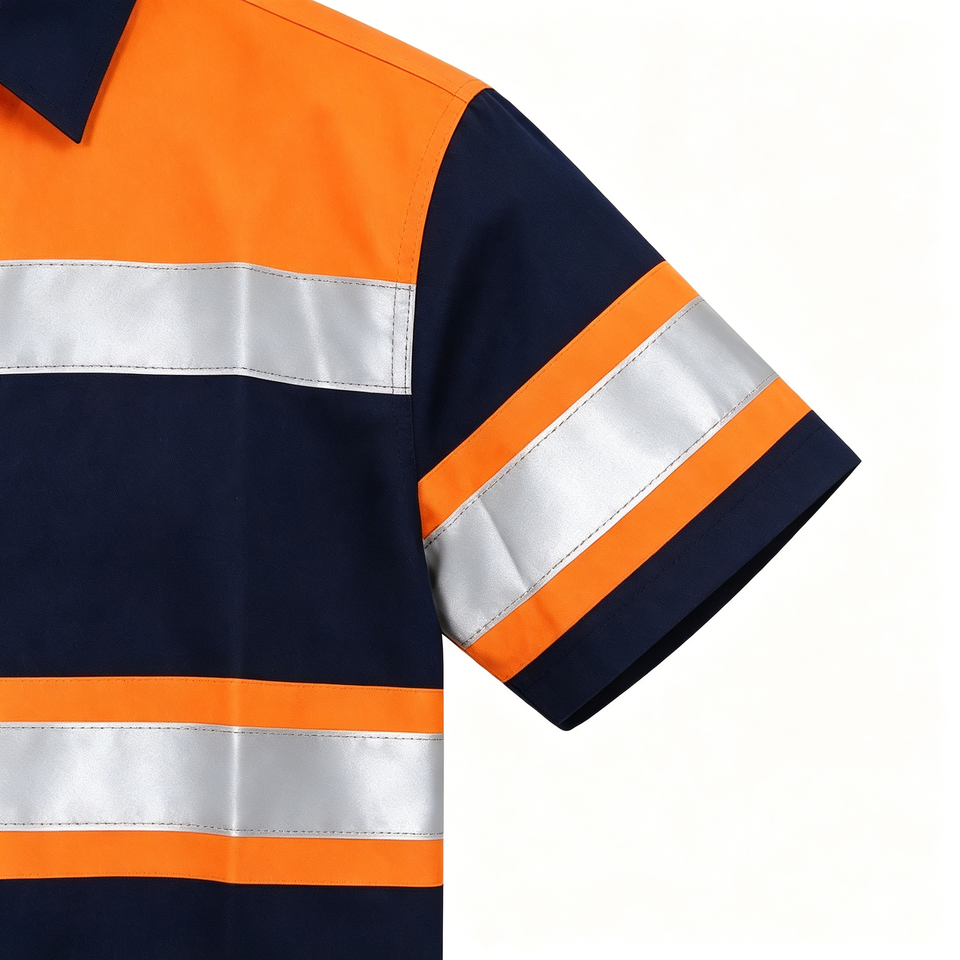 Custom Logo Reflective High Visibility Safety Lightweight Breathable Polyester Short Sleeve