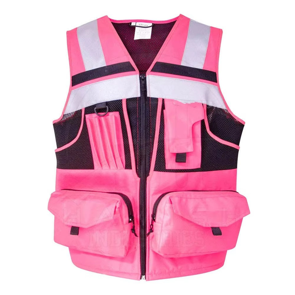 Chaleco de trabajo de alta visibilidad reflectante con logotipo personalizado para construcción de seguridad industrial Ropa exterior de verano con bolsillos personalizados