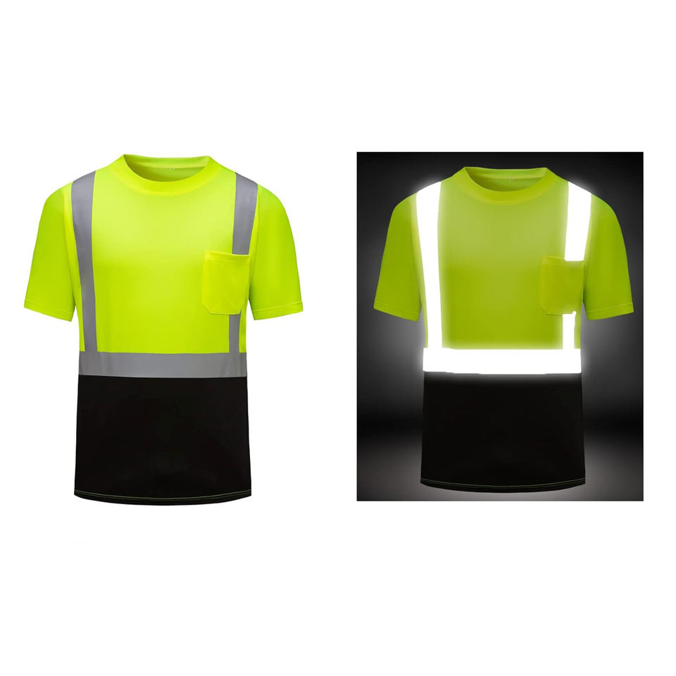 Camiseta Verde de Manga Corta Reflectante con Logotipo Personalizado, Bolsillo en el Pecho y Material Reflectante de Alta Calidad para Ropa de Trabajo
