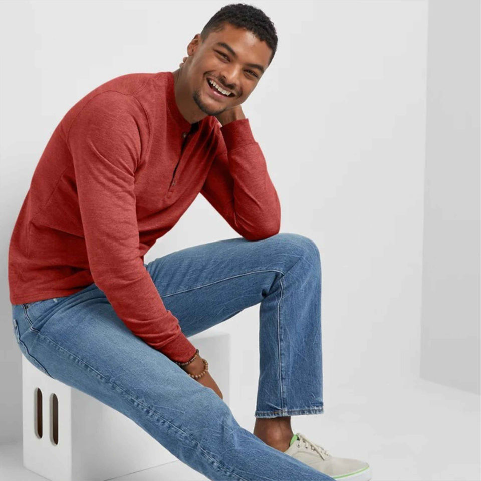 Camisetas de punto informales transpirables de corte regular con logotipo personalizado para hombre, camisetas de manga larga con cuello redondo y botones para hombre