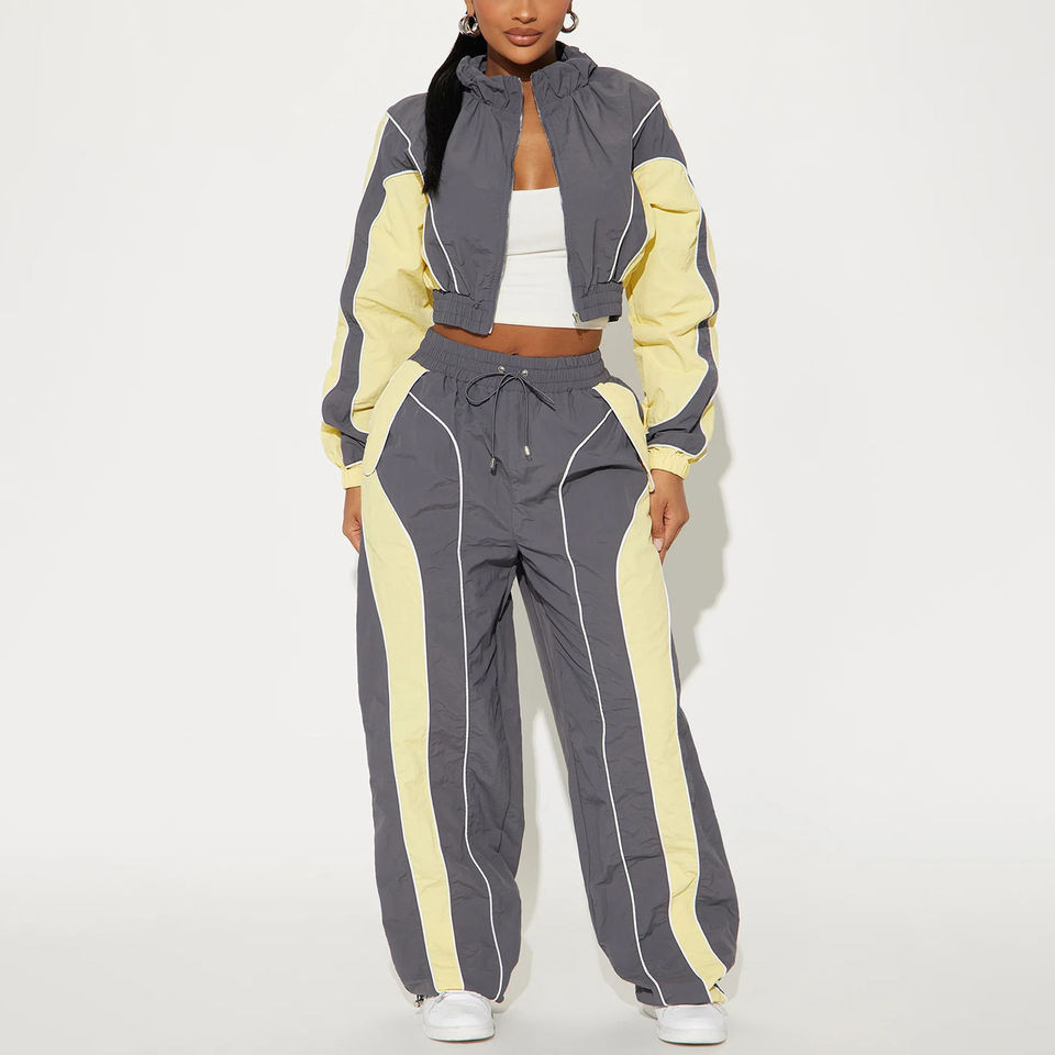 Conjunto deportivo de nailon para mujer, con logotipo personalizado, para invierno, estilo informal, para correr, entrenar, con cintura elástica, cortavientos.