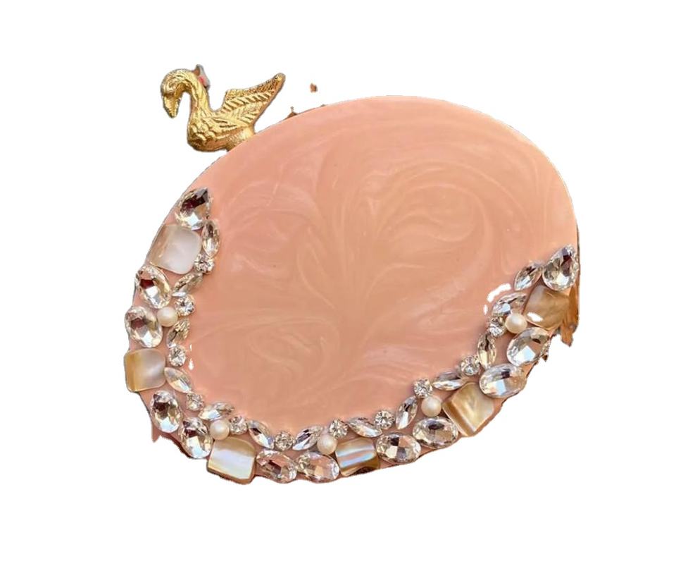 Bolso de mano con piedra preciosa de resina con logotipo personalizado, estilo Vintage, para bodas, fiestas, eventos, monedero, abalorios, diseño creativo, bolsos de mano de resina