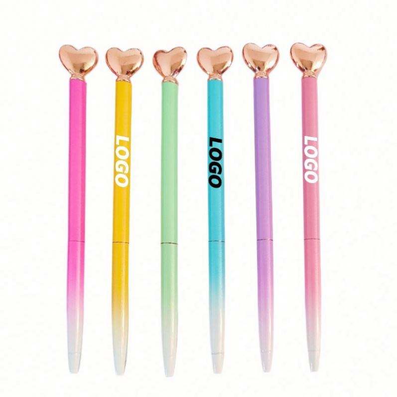 Bolígrafo Retráctil con Logotipo Personalizado, Delgado, de Plástico, Colores Vivos, Forma de Corazón, para Oficina y Regalo, para Bodas y Cumpleaños