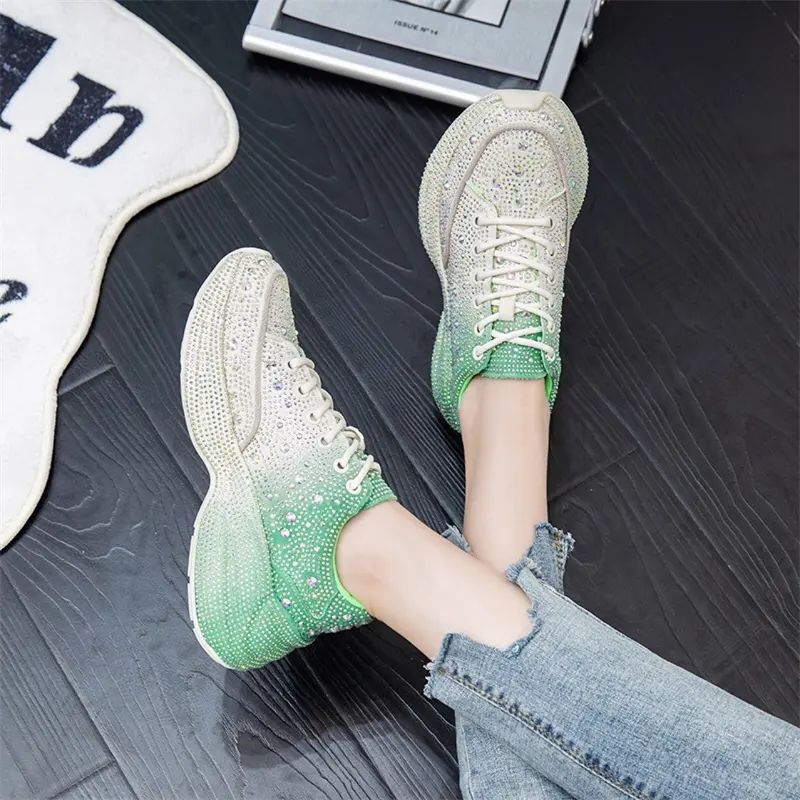 Zapatillas de Moda para Mujer con Logotipo Personalizado y Pedrería, Talla Grande, Estilo Chunky