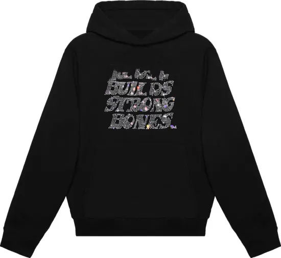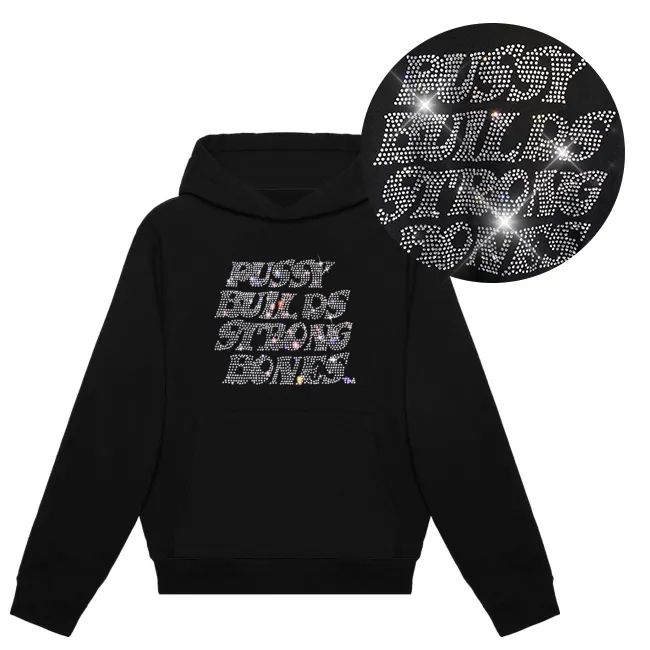 Suéter con diamantes de imitación y logotipo personalizado, Sudadera negra con capucha 320GSM de algodón polar, ropa de calle ostentosa, jersey de ajuste regular para hombres y mujeres