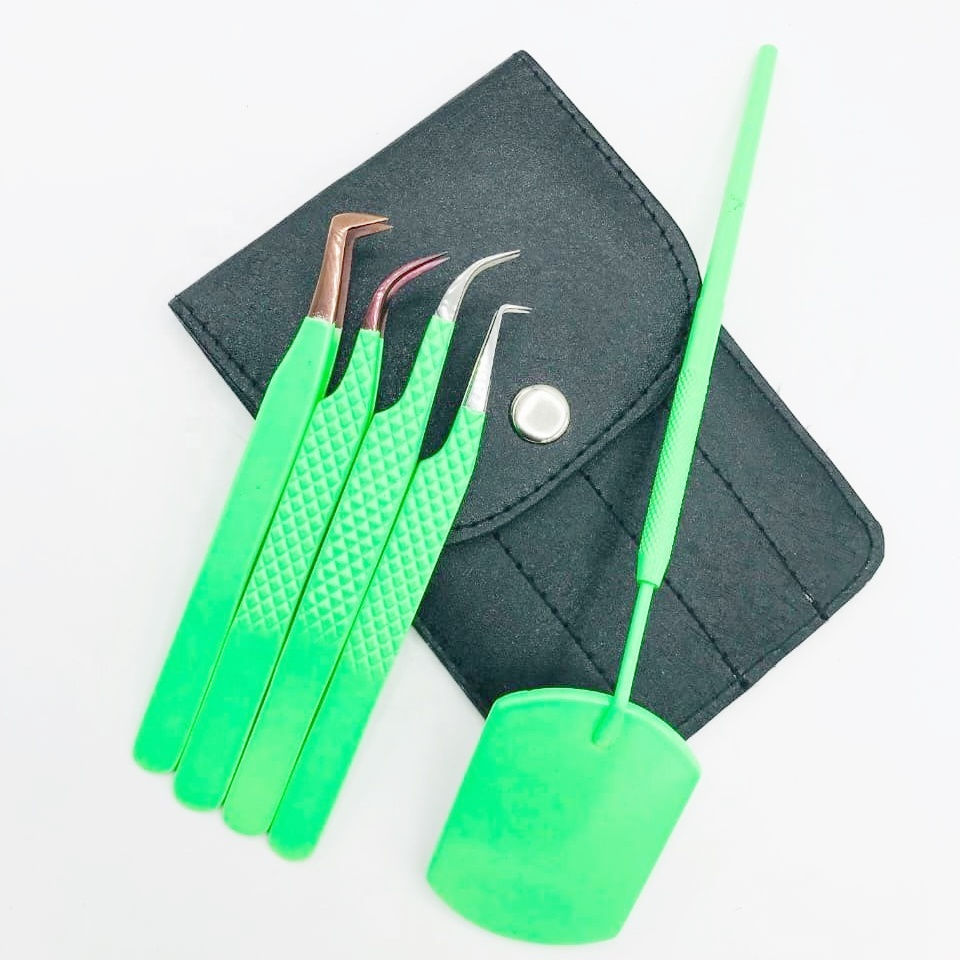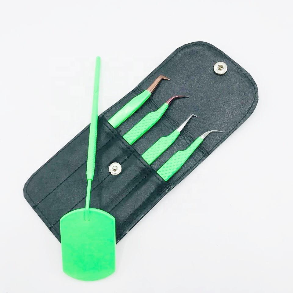 Juego de pinzas para extensión de pestañas con agarre de diamante de Color loro con logotipo personalizado, Punta puntiaguda fuerte de acero inoxidable, OEM ODM disponible