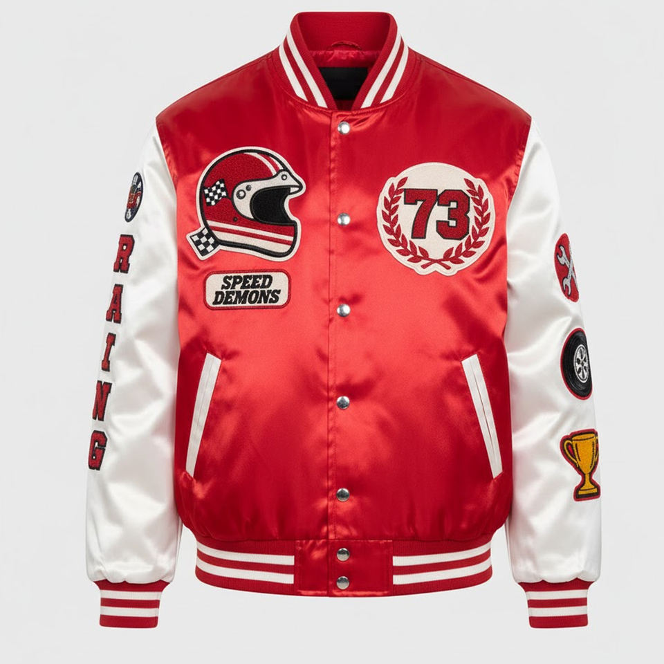 Nombre del Producto:Chaqueta Universitaria de Satén con Bordado de Chenille para Hombre
