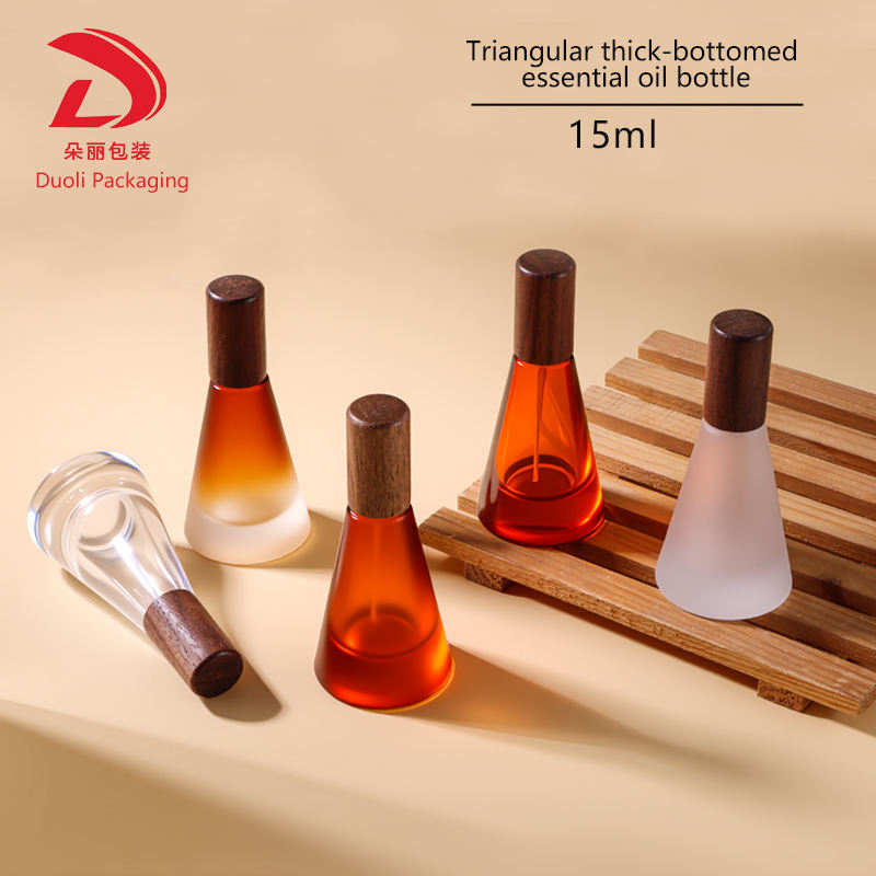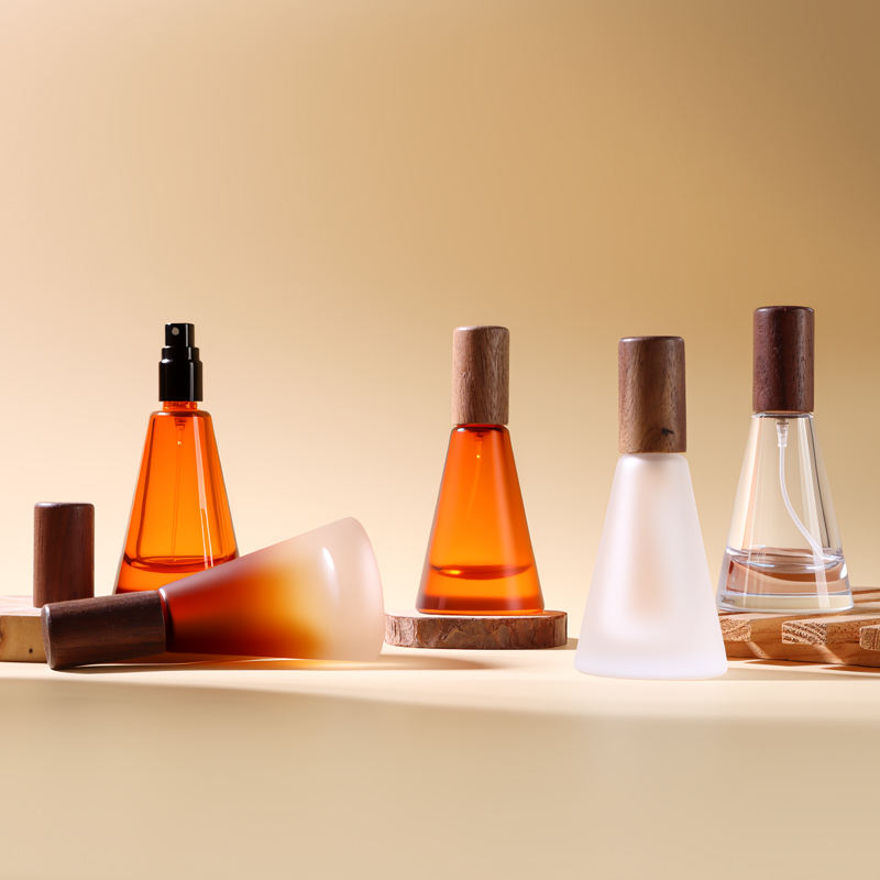 Botella de spray de perfume de cristal naranja con degradado esmerilado serigrafiado con logotipo personalizado 15ml pulverizador de bomba recargable de forma cónica Doully