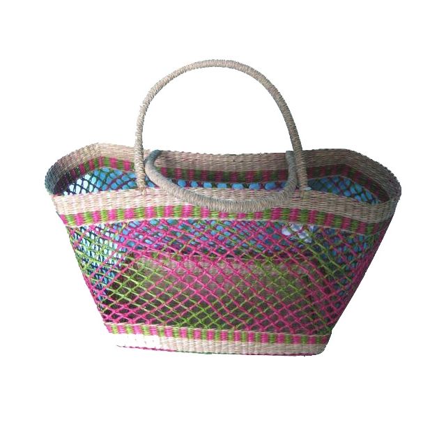 Bolso de mano informal hecho a mano de algas marinas con logotipo personalizado, bolsos de paja ecológicos para compras de verano y moda de playa para minoristas