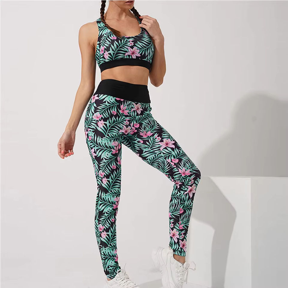 Conjunto Deportivo con Logotipo Personalizado, Sujetador Deportivo Sexy con Tirantes Dobles, Conjunto de Leggings de Yoga con Cintura Elástica y Estampado Digital sin Costuras