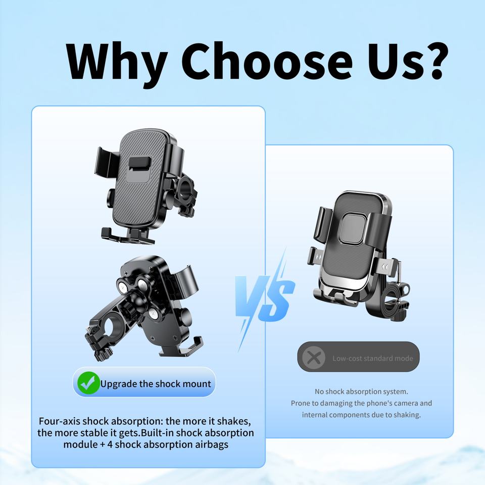 Palabras clave:Soporte para teléfono móvil de motocicleta con absorción de impactos para motocicleta y bicicleta