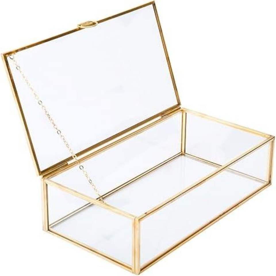 Organizador de Escritorio de Vidrio Arqueado con Borde Metálico Plateado y Logotipo Personalizado | Contenedor de Almacenamiento de Joyas con Espejo de Primera Calidad