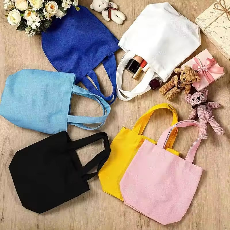 Bolsa de Lona Personalizada con Logotipo, Simple, Multicolor, Lisa, Mini, en Blanco, para DIY, Ecológica, con Asa de Letra, Correa para el Hombro, Pequeña, Mediana, para Compras