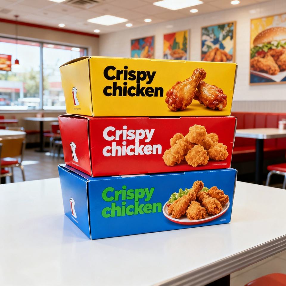 Empaque de alimentos, empaque de pollo frito, comida rápida para llevar