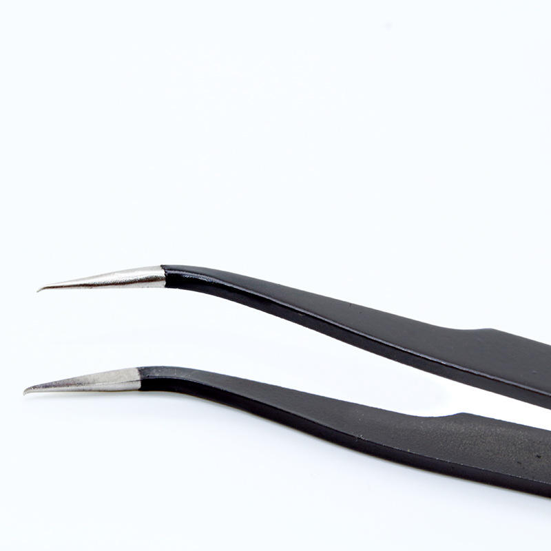 Kit de pinzas de extensión de pestañas de cejas de acero inoxidable puntiagudas inclinadas con logotipo personalizado