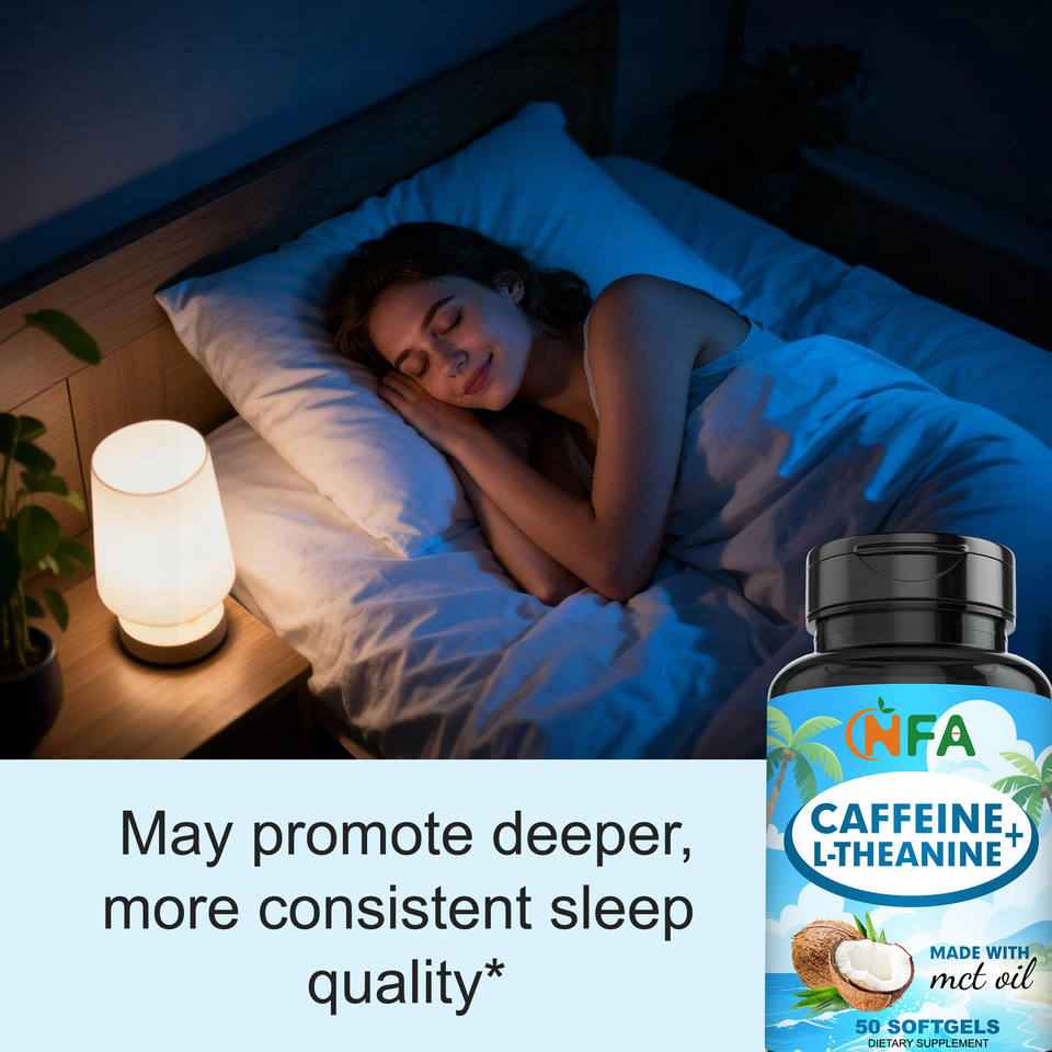 Cápsulas Blandas de Cafeína y L-Teanina con Logotipo Personalizado, Suplemento para Dormir Hecho con Aceite MCT, Favorece la Calma Mental, para Adultos