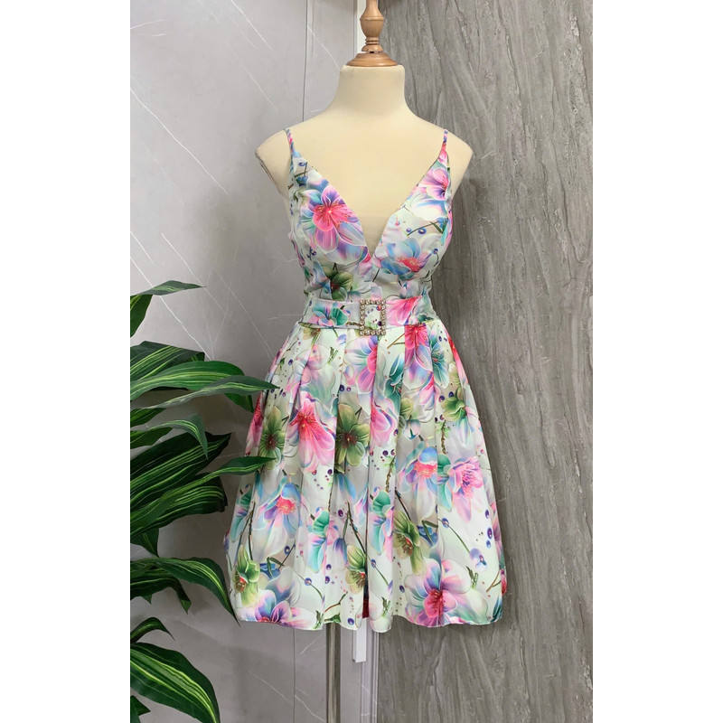 Logotipo personalizado sin mangas Floral Sundress Ruffles Square Collar Diseño sostenible XS-Plus XL Tallas para fiestas de día Vestido informal