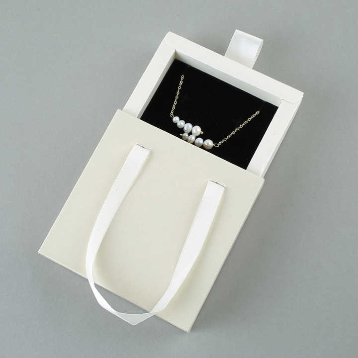 Caja de regalo de joyería de papel deslizante con logotipo personalizado, bonito diseño de cajón con asa para juego de collar de anillo