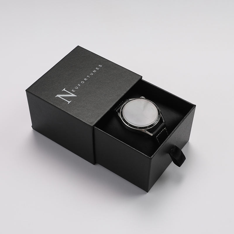 Caja de Regalo para Reloj con Cajón Deslizante y Logotipo Personalizado, Caja de Embalaje de Alta Calidad en Color Negro de Lujo