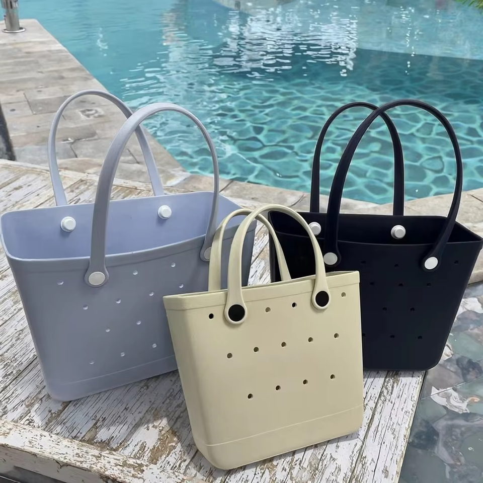 Bolsas de Compras de Eva Personalizadas con Logotipo, Bolsas de Mano de Silicona Impermeables para Bebés, Bolsas de Playa de Moda para Exteriores