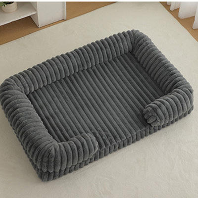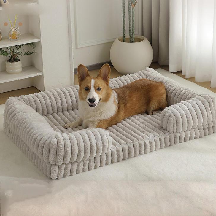 Cama Rectangular de Lujo para Perros Pequeños con Logotipo Personalizado, Diseño Esponjoso con Almohadas para el Cuidado del Cuello, Fácil de Lavar, Sofá Cama para Perros Pequeños con Diseño de Rayas
