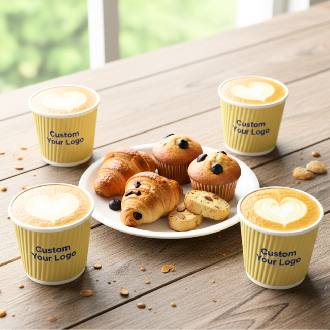 Vasos de papel desechables con pared ondulada pequeña y logotipo personalizado al por mayor para tiendas de café y té