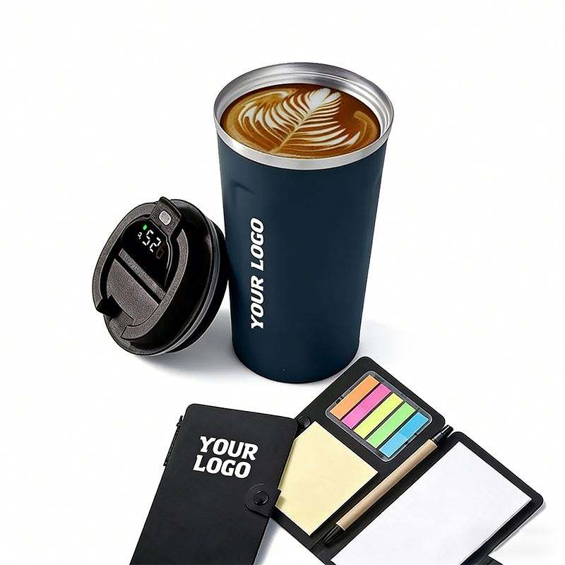 Taza de Café Inteligente con Logotipo Personalizado, Pantalla de Temperatura, Doble Pared, Regalo Empresarial Promocional, Botella de Agua Aislada de Acero Inoxidable con LED Portátil