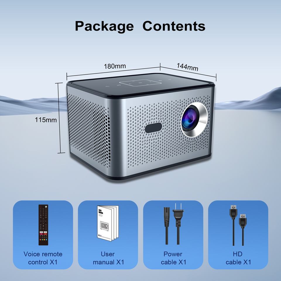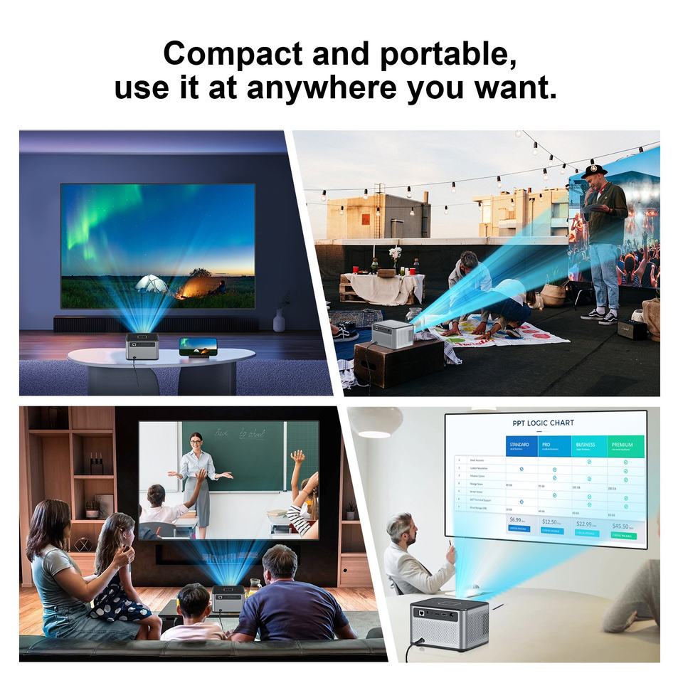 Mini Proyector LED Inteligente Portátil con Logotipo Personalizado, DVB-T2, Android 9.0, 4K, Corrección Trapezoidal Automática, WiFi, Duplicación de Pantalla del Teléfono, Cine al Aire Libre