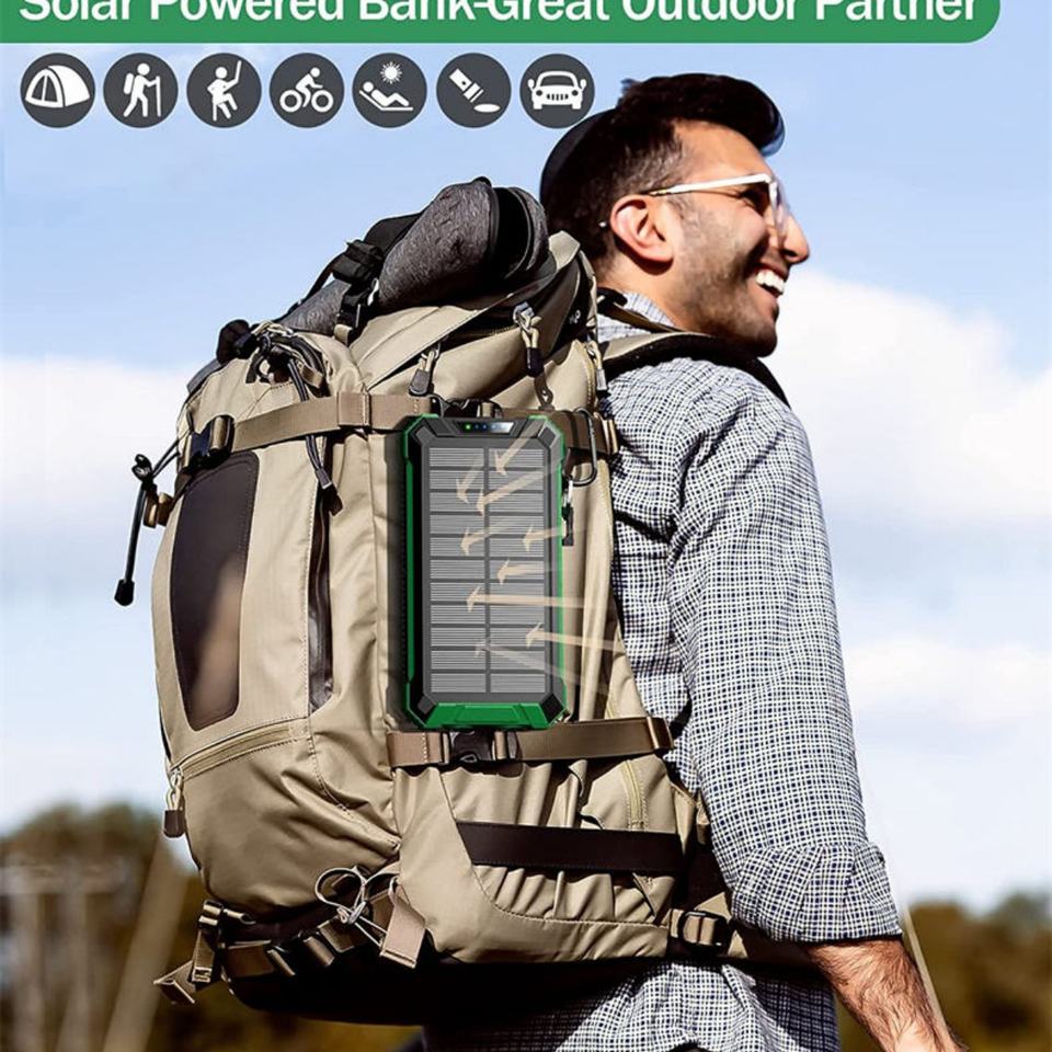 Banco de Energía Solar Inalámbrico con Logotipo Personalizado, Cargador Solar Móvil de 20000 mAh con Lámpara para Exteriores