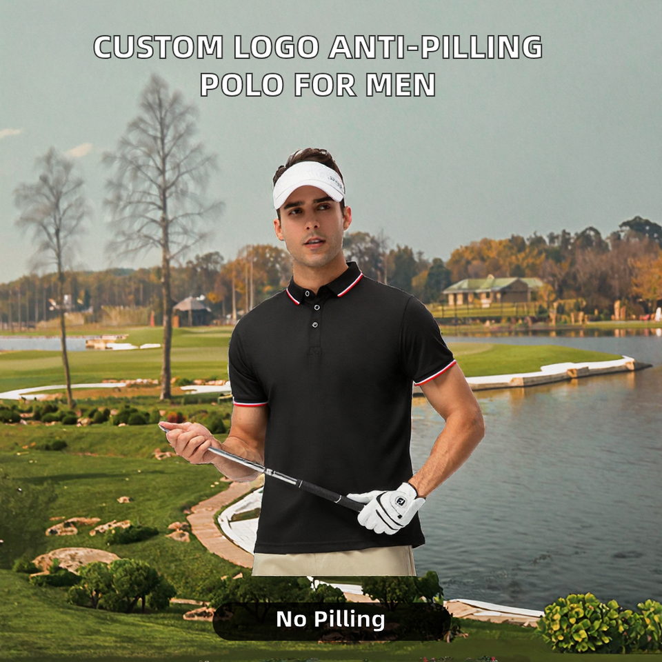 Camiseta de Golf Personalizada con Logotipo, Tejido Anti-Pilling, Cómoda, de Algodón y Poliéster para Hombre, Manga Corta, para Pádel y Tenis