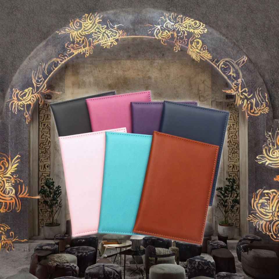 Funda de Pasaporte de Cuero PU de Color Sólido con Logotipo Personalizado, con Porta Tarjetas de Crédito y sin Cierre, para Viajes
