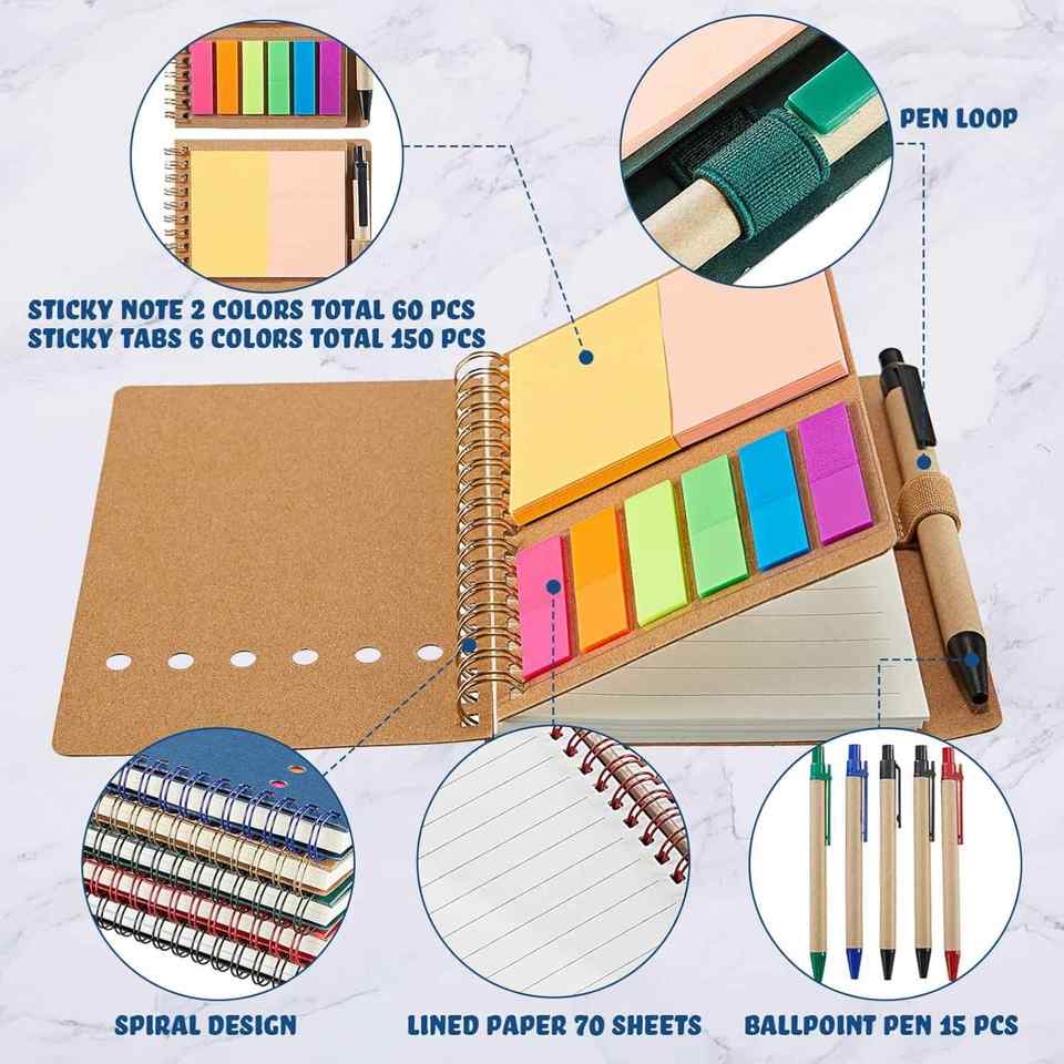 Cuaderno Espiral con Logotipo Personalizado y Notas Adhesivas, Diario de Papel Kraft Personalizado, Ideal para Regalos Promocionales Empresariales