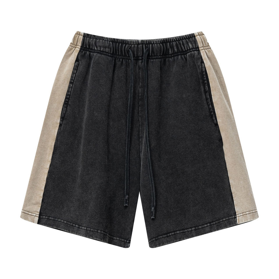 Pantalones cortos deportivos con cordón lavado con ácido y dobladillo dividido con logotipo personalizado OEM ropa deportiva de algodón para hombre entrenamiento Fitness pantalones cortos para correr