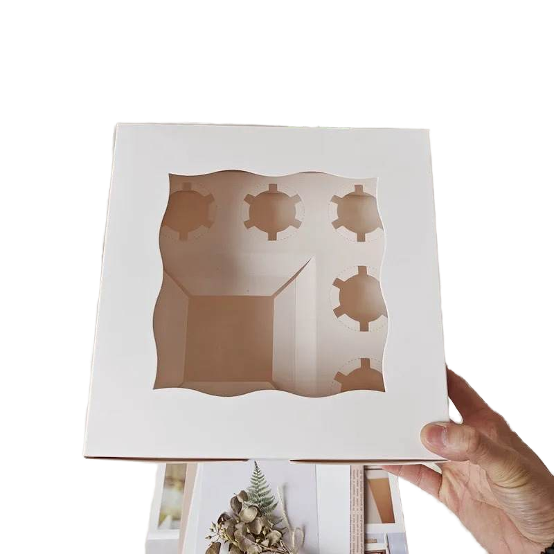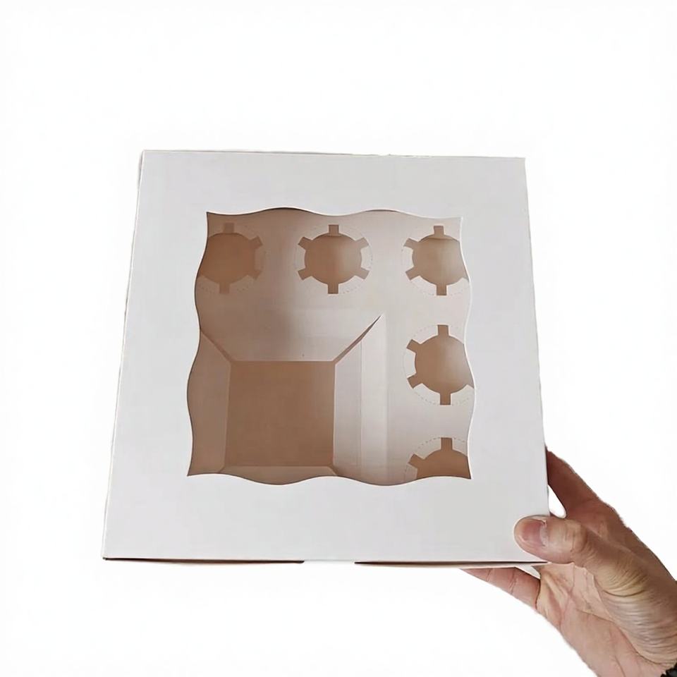 Caja de Pastel Cuadrada Personalizada con Logotipo, para Cupcakes, 10x10x5 Pulgadas, 350g, Cartón Color Marfil, Revestimiento de Esponja Reciclable, Cierre Magnético