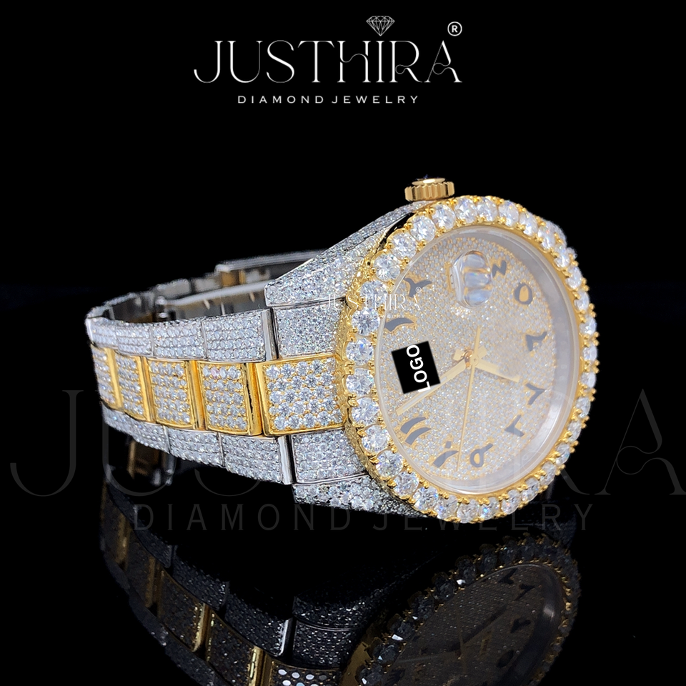 Reloj Deportivo de 41 mm para Hombre, Colección Hip Hop, con Caja de Acero Inoxidable y Logotipo Personalizado, Esfera con Incrustaciones de Diamantes Moissanite Grandes
