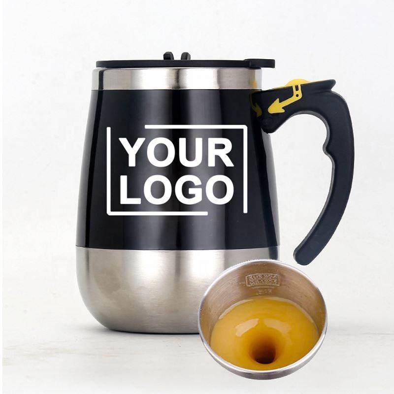 Taza de café de acero inoxidable con logotipo personalizado, tazas autoagitadoras, batidora inteligente automática eléctrica, tazas mezcladoras para revolver café, leche