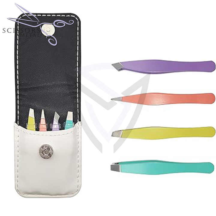 Pinzas para cejas de acero inoxidable con logotipo personalizado, herramienta para cejas falsas puntiagudas para cejas de belleza, multicolores disponibles