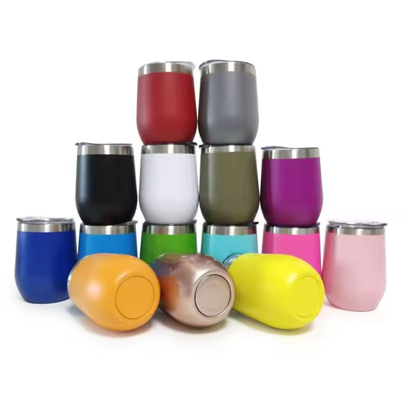 Taza de café con forma de huevo recubierta de polvo con aislamiento de acero inoxidable con logotipo personalizado, tapa de vaso de vino de 12oz, portátil Americano para la escuela