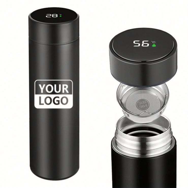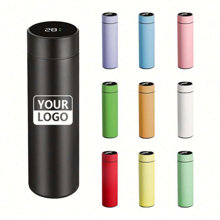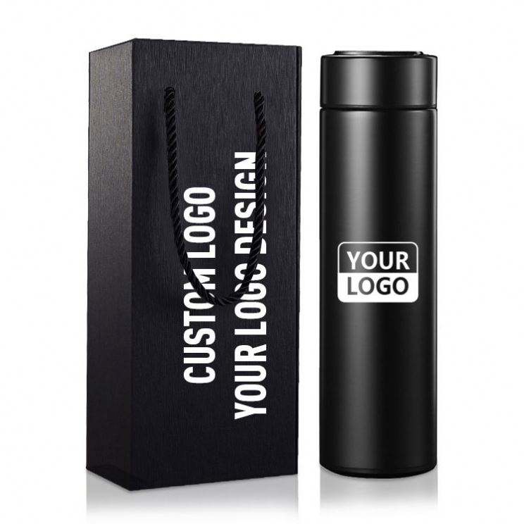 Termo de Acero Inoxidable con Logotipo Personalizado, Botella de Agua Térmica Inteligente Clásica de 500 ml