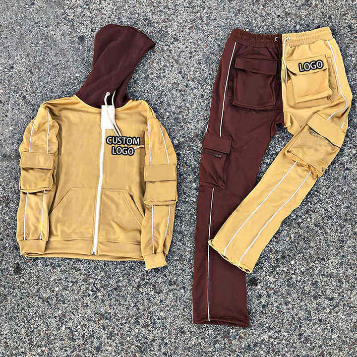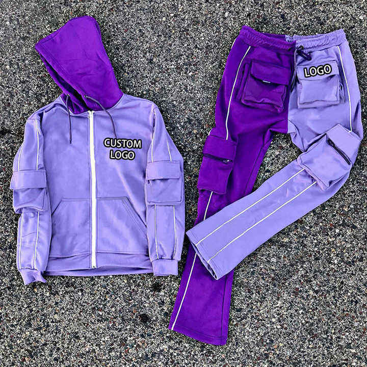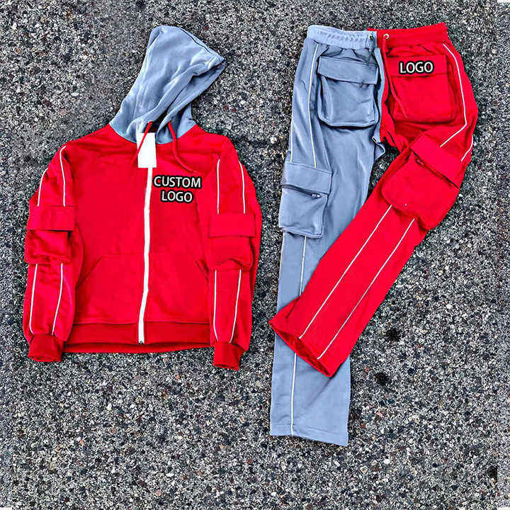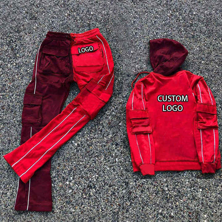 Ropa de calle con logotipo personalizado, chándal para hombre con bloque de color, chándal apilado, pantalones acampanados para hombre, sudaderas con capucha, nuevo diseño, chándal para hombre