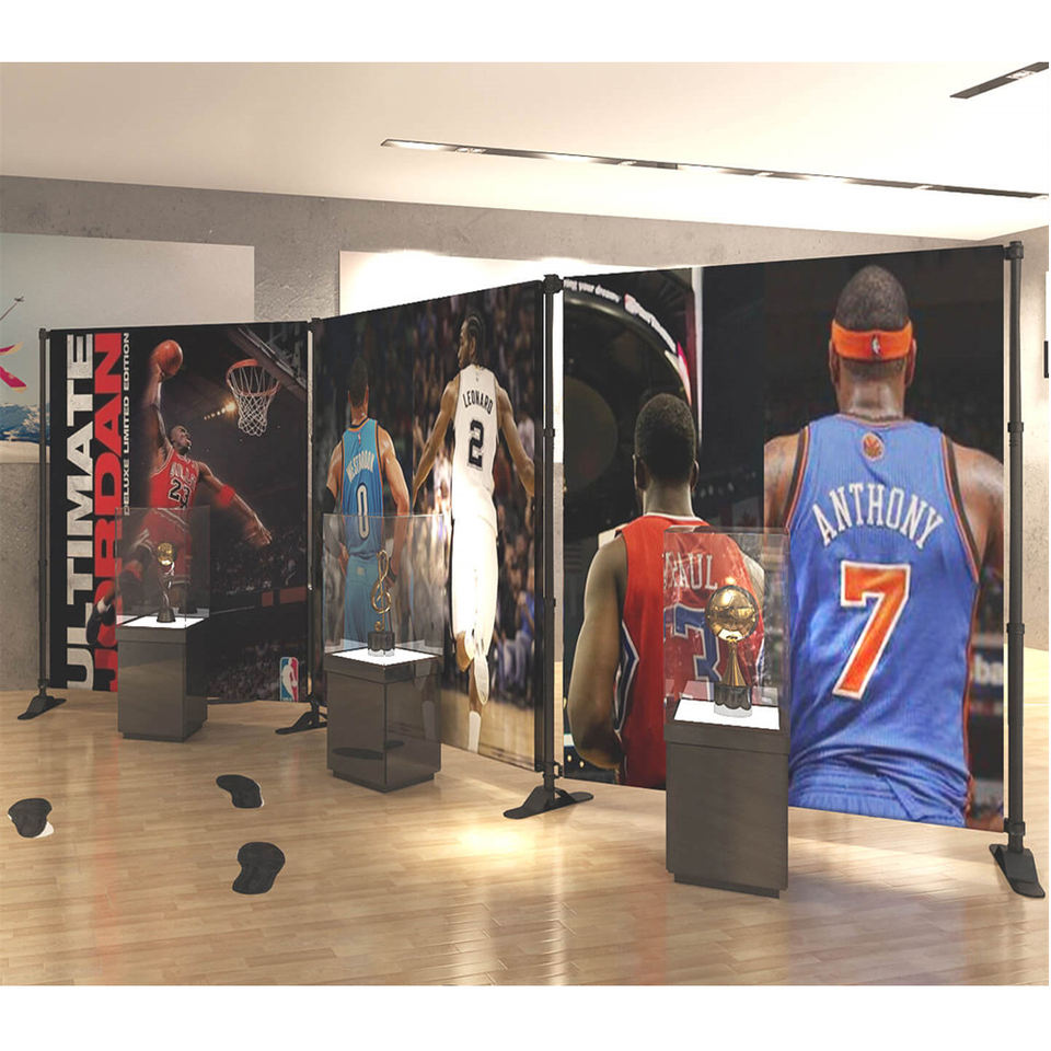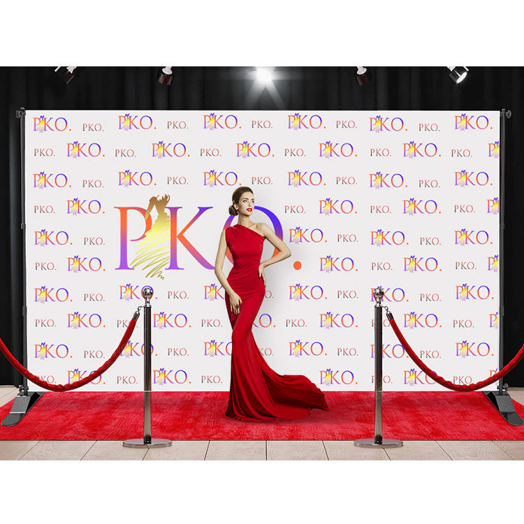 Telón de fondo de cabina de publicidad de estiramiento de logotipo personalizado Banderas de paso y repetición portátiles