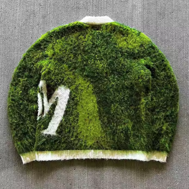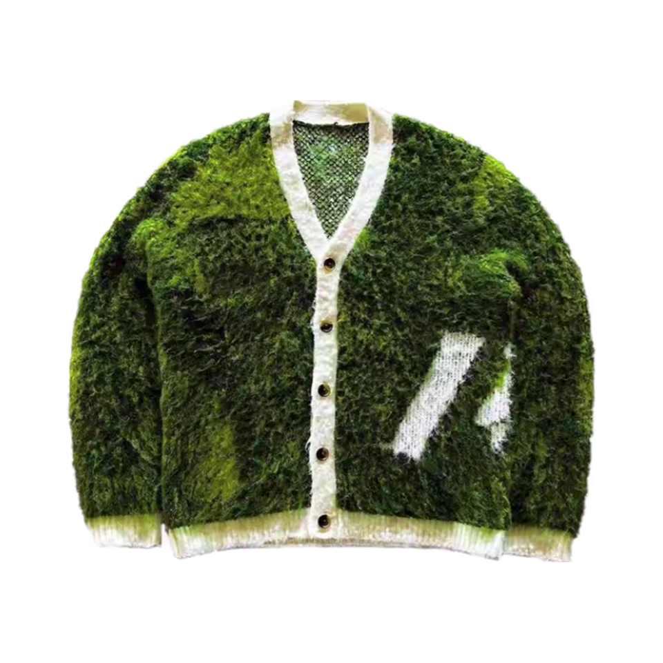 Suéter de Mohair para hombre de Jacquard con cuello en V y manga regular a rayas y logotipo personalizado, cárdigan borroso de otoño