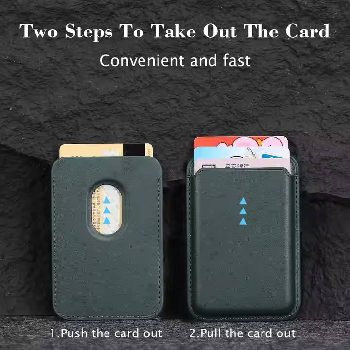 Cartera de teléfono magnética fuerte con logotipo personalizado, tarjetero Mag, cartera magnética de cuero seguro, tarjetero universal para iPhone