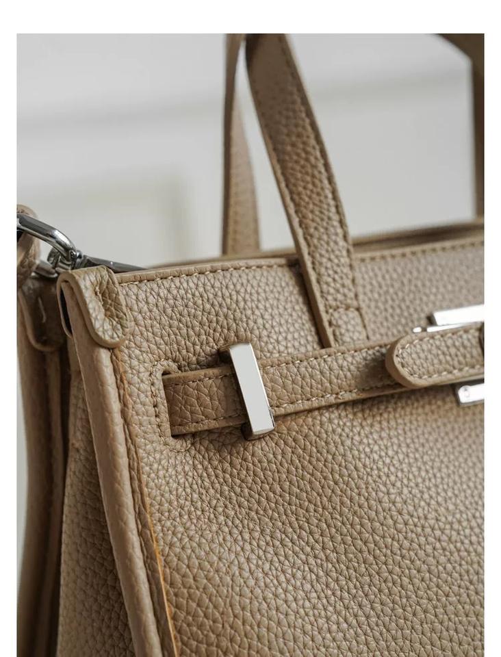 Bolso de Hombro de Cuero Togo Genuino para Mujer, Estilo Clásico Estructurado con Logotipo Personalizado