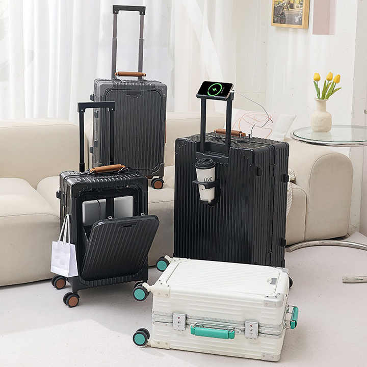 Equipaje de maleta con logotipo personalizado Maleta de negocios elegante con portavasos Compacto de 20 pulgadas Ligero de mano